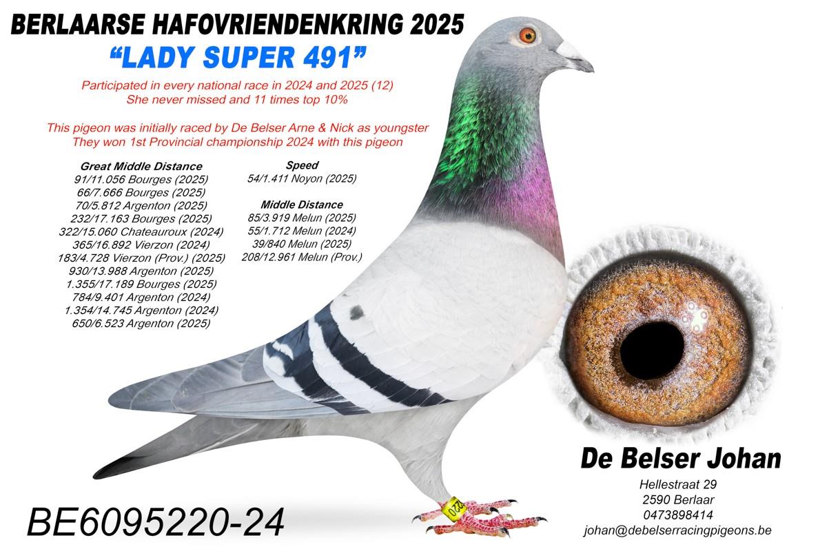 Ook bij de jaarse duiven werd sterk gepresteerd. Lady Super 491 eindigde als tweede beste jaarse duif op 7 vluchten en liet zich het volledige seizoen door opmerken met constante kopprijzen.